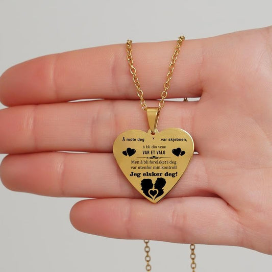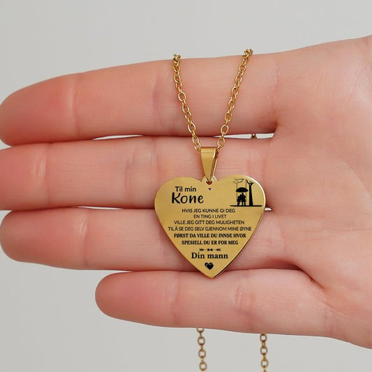 Kjære kvinne - Hjerteanheng gravert fra mann til kone