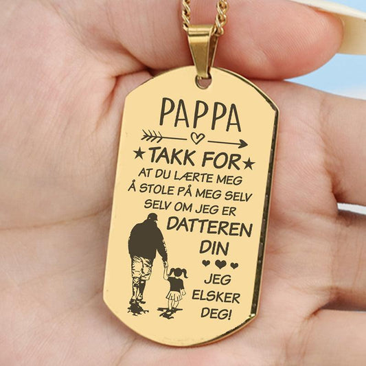 Jeg er stolt av deg – Anheng gravert fra datter til far