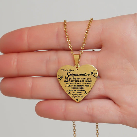 Jeg er stolt av deg – Hjerteanheng gravert fra svigermor til svigerdatter