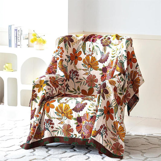 "Trær blomstrer" Boho Vevd Dobbeltsidig Pledd