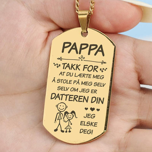 For den beste faren – Anheng gravert fra datter til far
