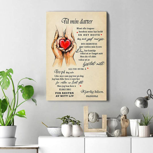 Foto på lerret fra mor til datter - "Hjertet er fullt av kjærlighet"