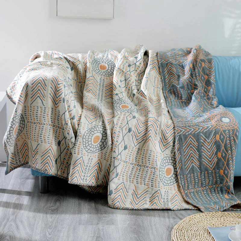 "Geometri" Boho Vevd Dobbeltsidig Pledd