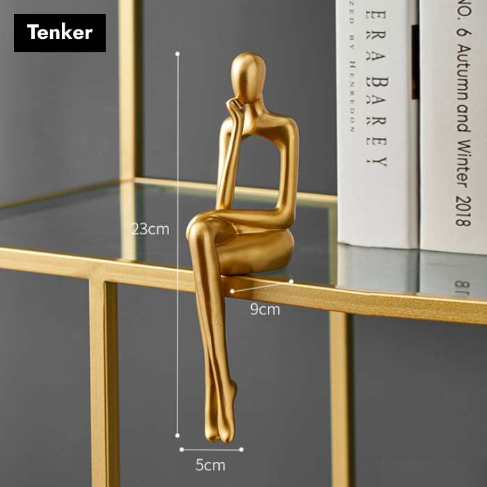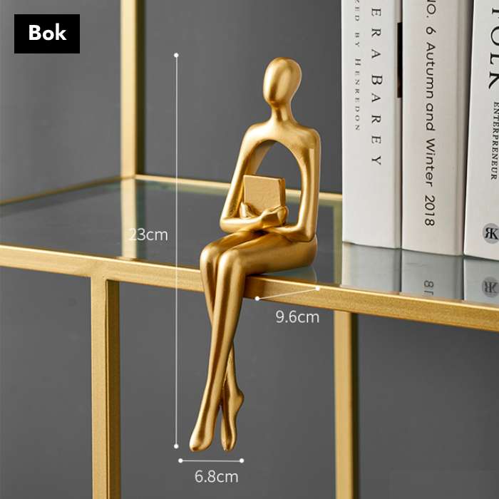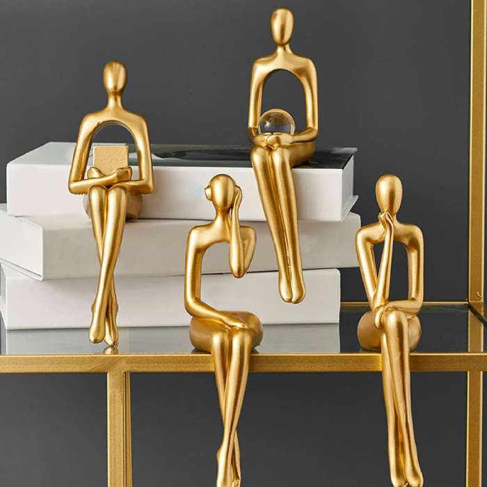 Gullfargede abstrakte figuriner gir deg en kontur av en skikkelse og lar fantasien fylle inn resten. En vakker og moderne kunstgjenstand for å dekorere hjemmet ditt med.
