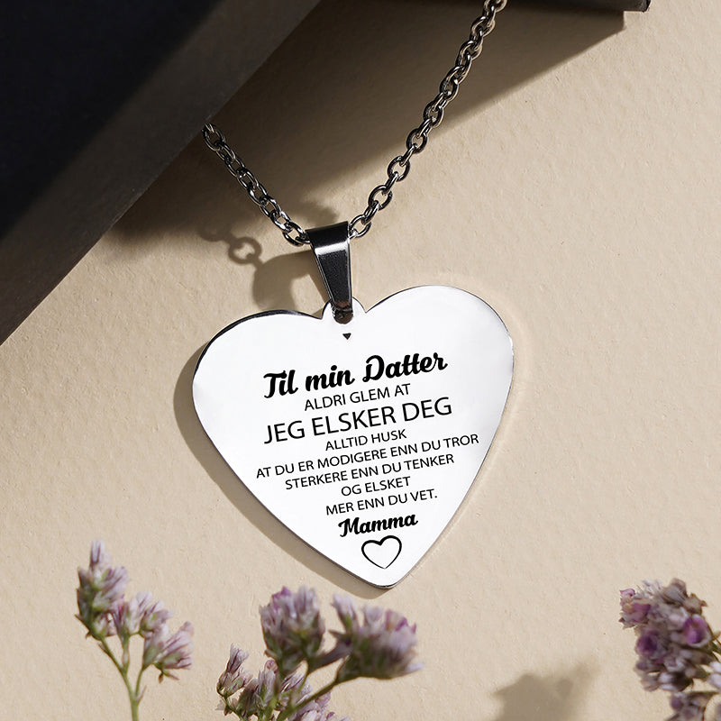 Ikke glem min kjære – Hjerteanheng gravert fra mor til datter