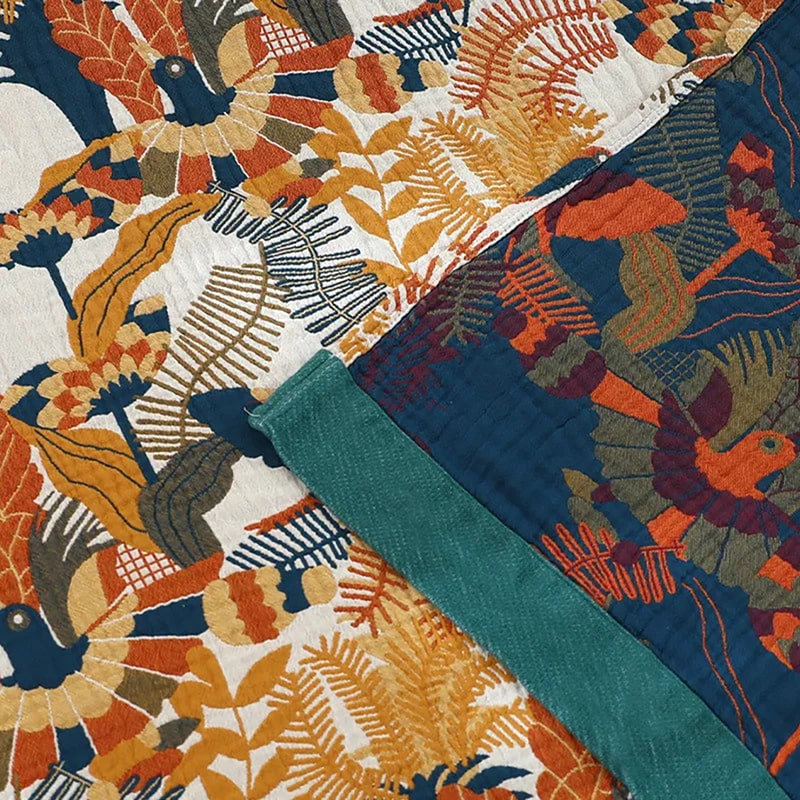 "Oransje blader" Boho Vevd Dobbeltsidig Pledd