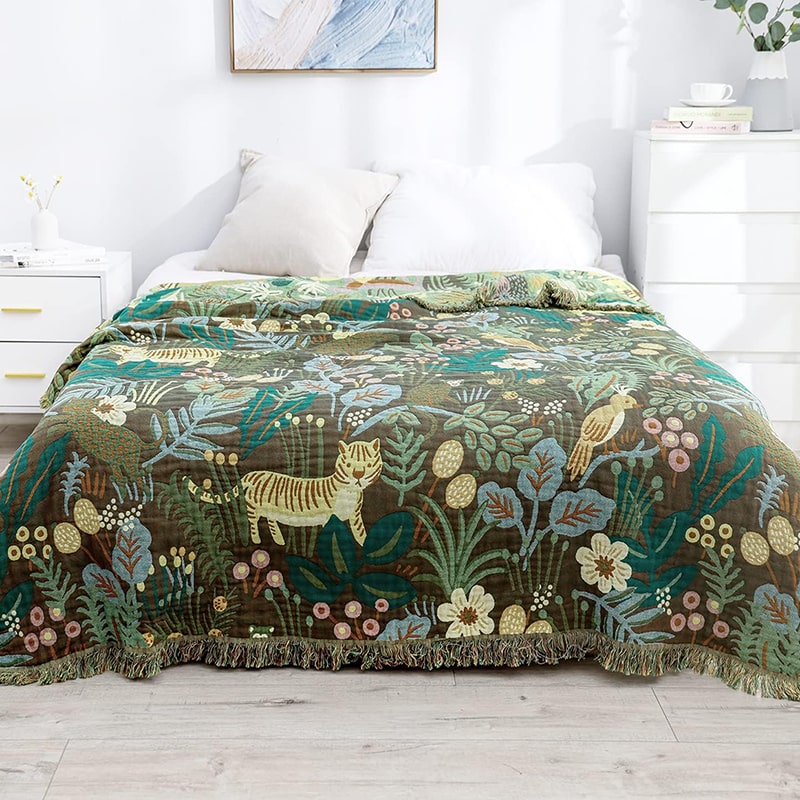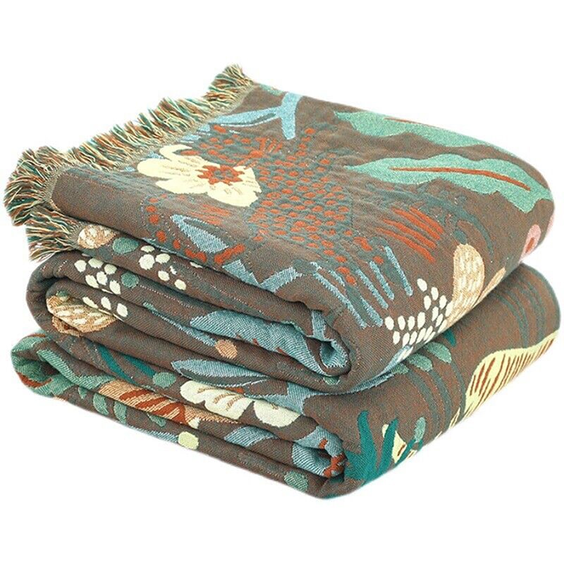 "Skoglivet" Boho Vevd Dobbeltsidig Pledd
