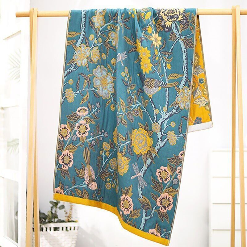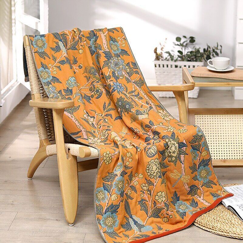 "Trær blomstrer" Boho Vevd Dobbeltsidig Pledd