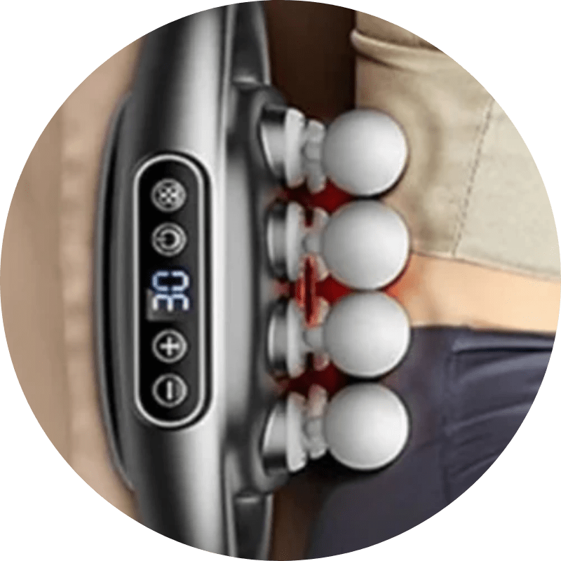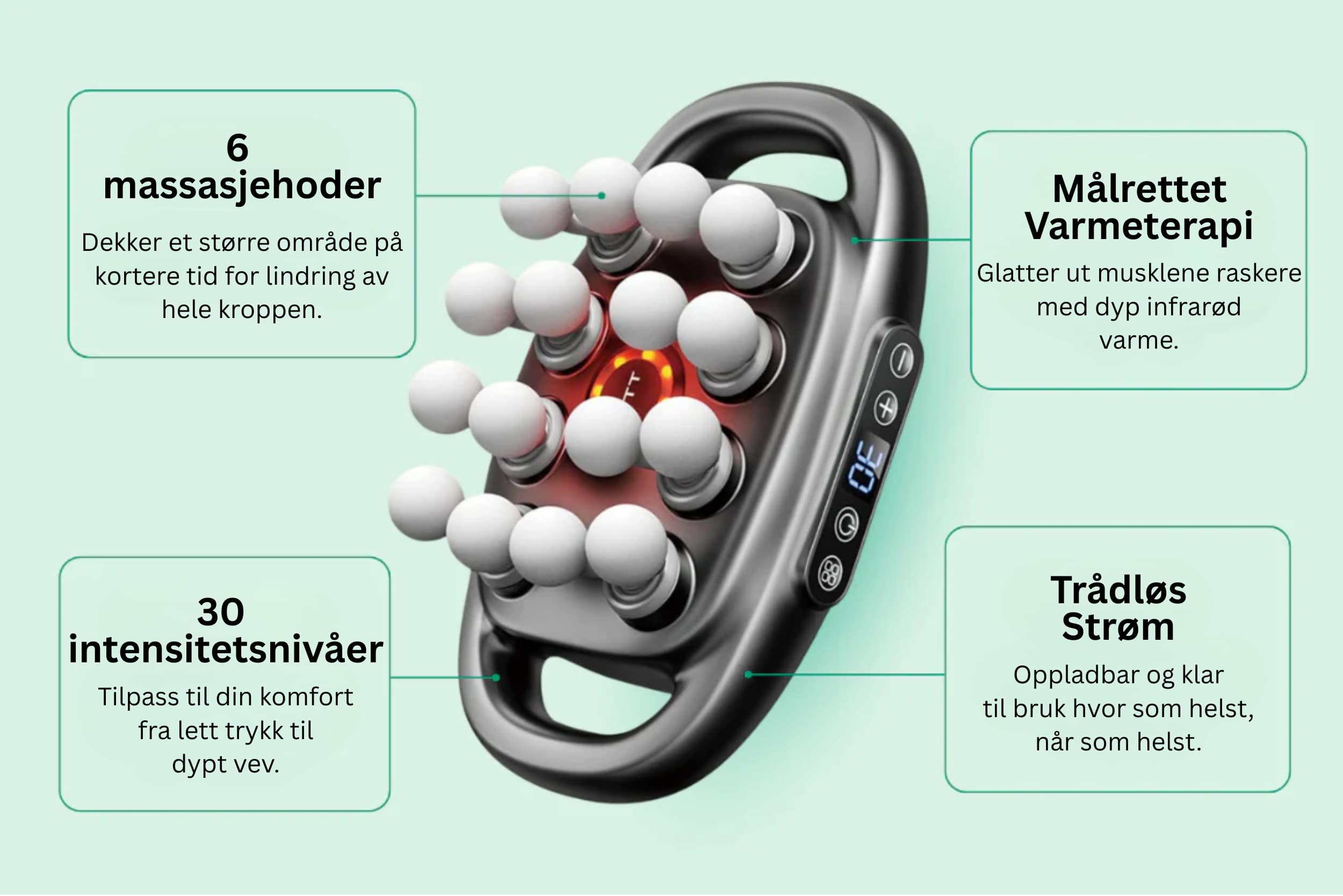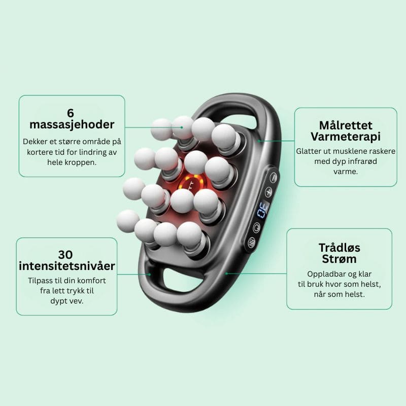 Dyp, oppvarmet massasje som løser opp knuter og smelter spenninger på få minutter. Det er som å få en profesjonell massasjeterapeut rett hjem i stua.