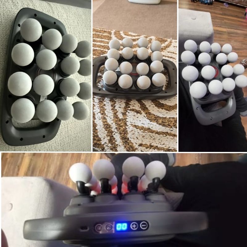 I motsetning til vanlige massasjepistoler kombinerer denne enheten dyp vevsknåding, infrarød varmeterapi og flere massasjehoder for å dekke hele kroppen. Den er trådløs, bærbar og enkel å bruke hvor som helst.