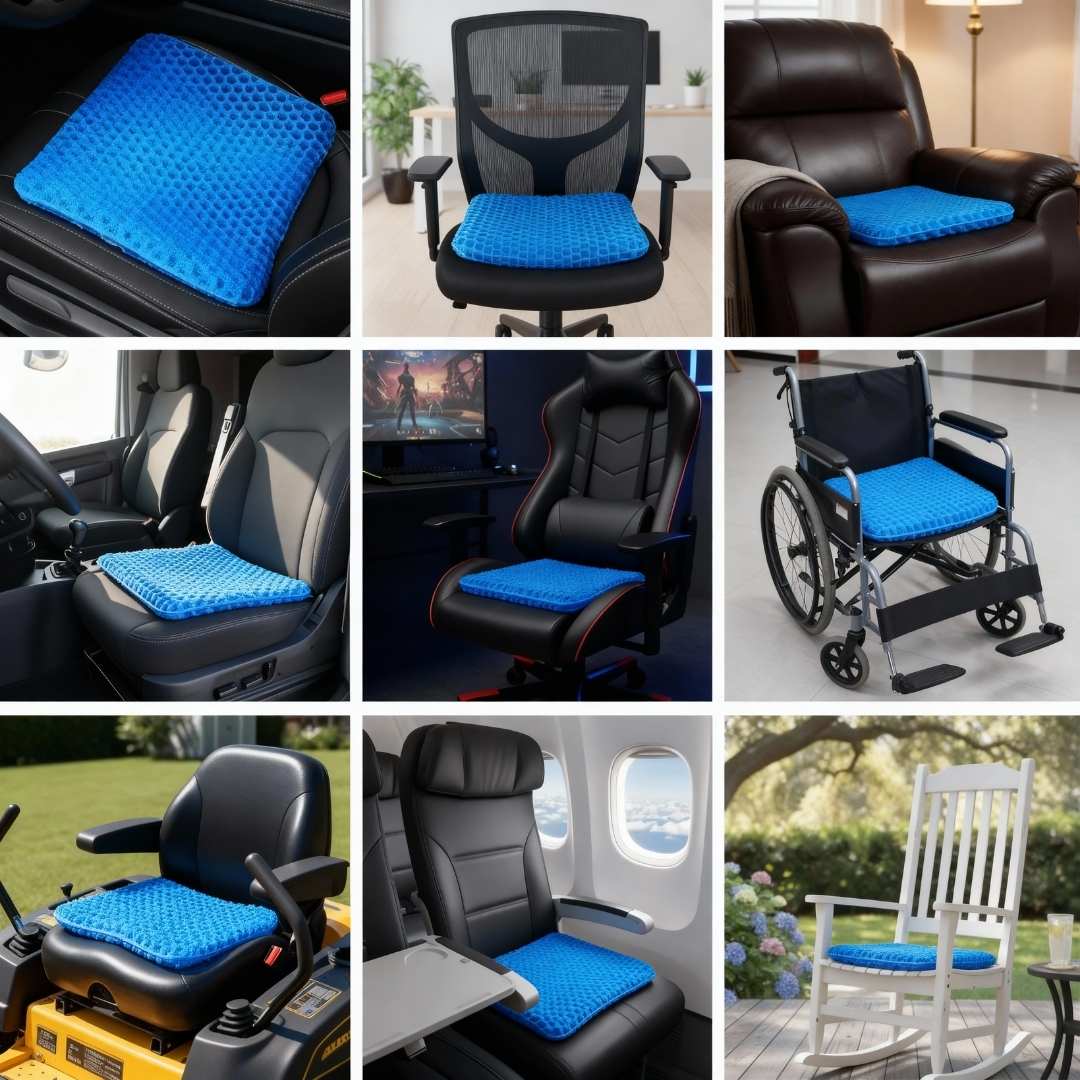 Trelii tilpasser seg alle seter du bruker. Den stabile basen og den sklisikre undersiden holder den på plass på bilseter, kontorstoler, spisestoler og rullestoler for komfort i hverdagen. Gelteknologien former seg etter kroppen din uten å miste formen, mens det avtakbare, maskinvaskbare trekket holder den frisk hver dag.