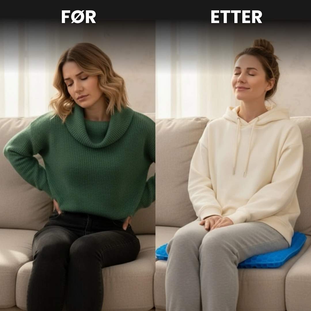Trelii bruker responsiv gelteknologi for å avlaste trykket fra halebenet. I stedet for å trykke direkte på beinet, fordeles vekten din over den kjølende geloverflaten, noe som reduserer den brennende smerten som gjør det uutholdelig å sitte.
