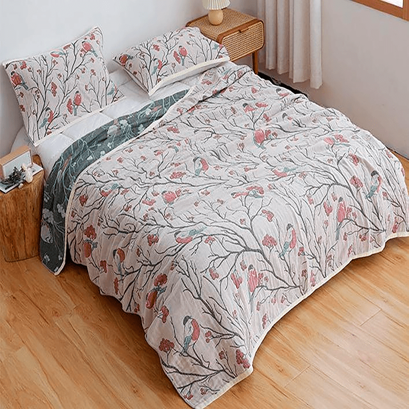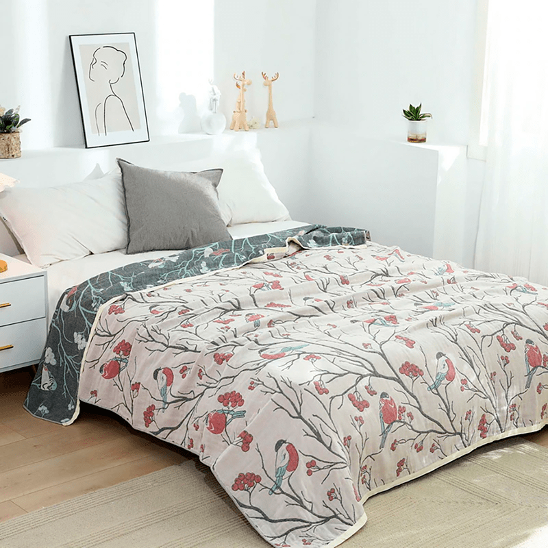"Vinterfugler" Boho Vevd Dobbeltsidig Pledd